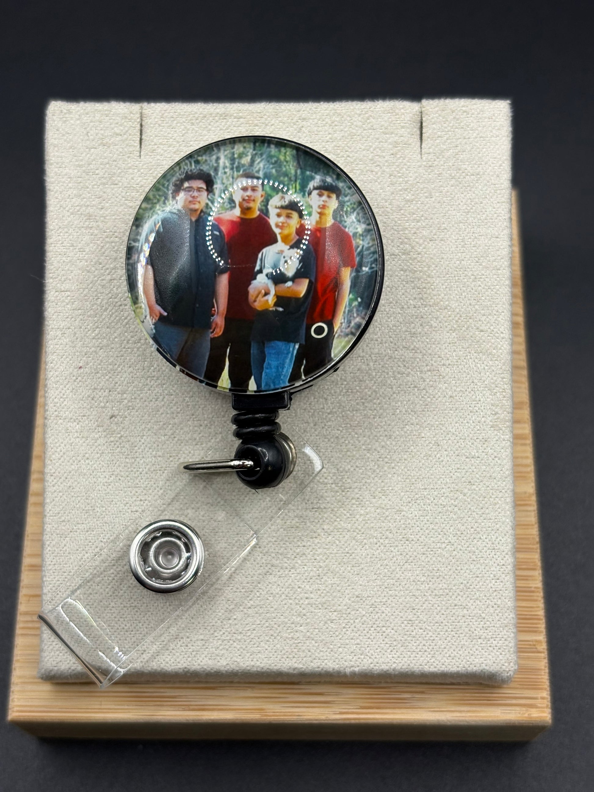 Reel in style with our 1" Cabochon Badge Reel! This badge reel features a custom image on a 1.18" cabochon, making it a unique and eye-catching accessory for any badge or ID. Show off your personality and keep your badge secure with this fun and quirky reel. (Magnetize your coworkers with badge envy!)